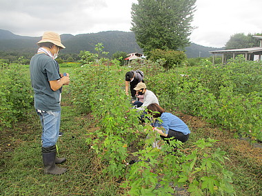 今年5年目を迎える棉栽培は、従来栽培してきた日本品種の茶棉に加え、世界各地の棉の栽培に挑戦し、さまざまな色、形の棉の実を収穫しました。これからも社員と家族が自然と触れ合い、「こころとからだの健康づくり」を実践する場として、さまざまな取り組みを行っていきます。