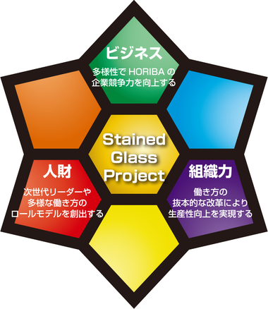※1 HORIBAステンドグラスプロジェクト:さまざまな色や形、大きさのステンドグラスが集まり1枚の美しい絵になるように、社員一人ひとりの強みや個性、才能を発揮することで、より強い組織を実現することを本プロジェクトの目標としています。2014年に発足し、2017年に組織化しました