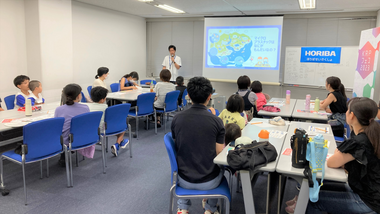 7月28日、KRPフェス2023(主催:京都リサーチパーク)において、HORIBAは「はかる」と「わかる」~“はかる機械”を体験しよう!と題して、小学生親子向けの出前授業を実施しました。