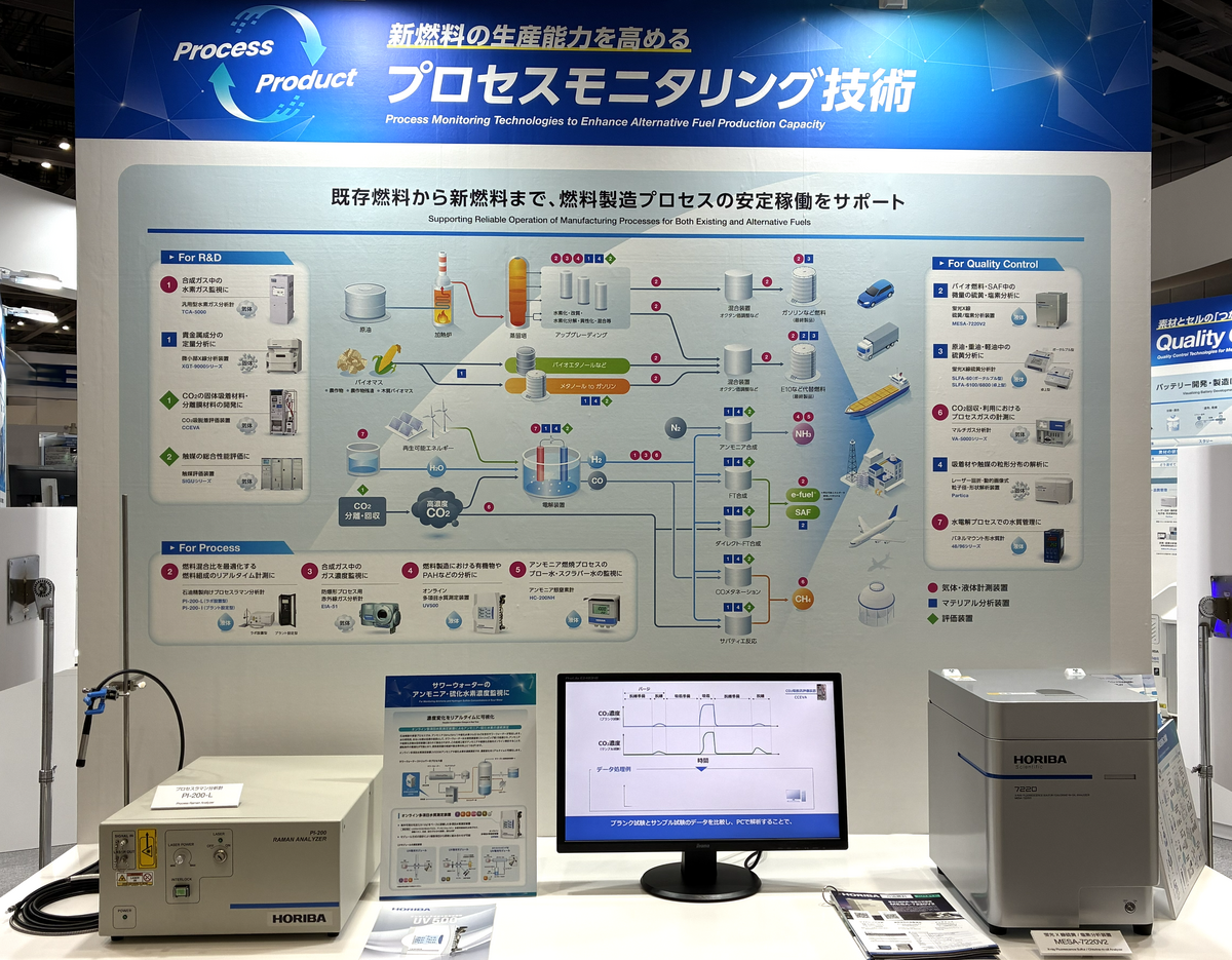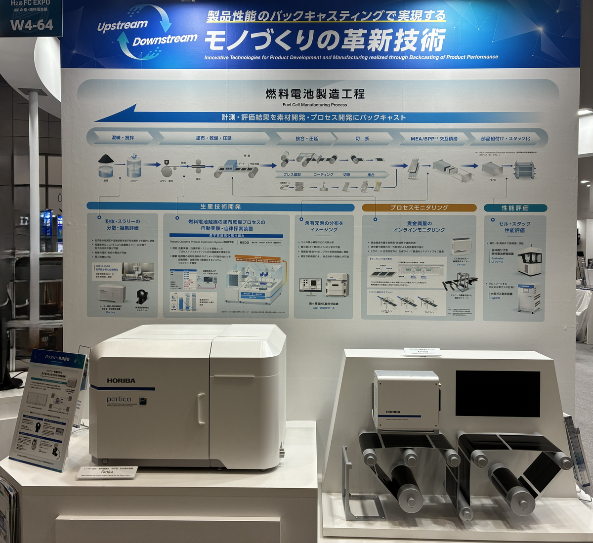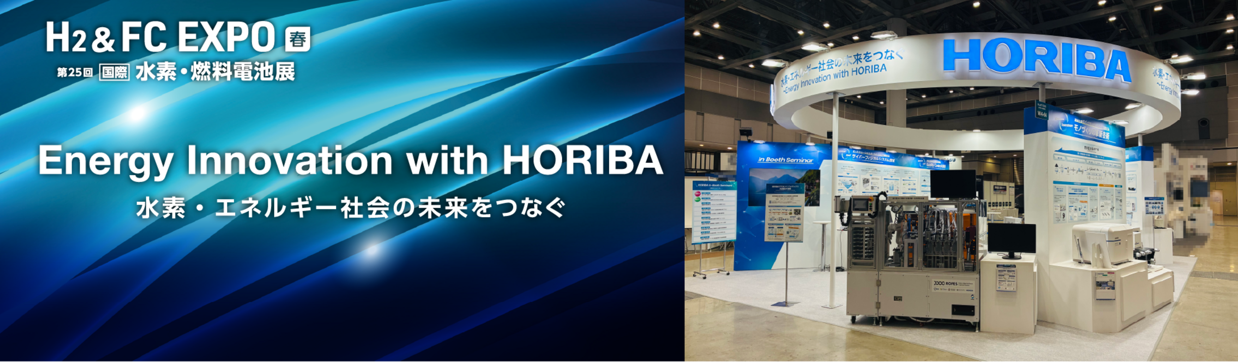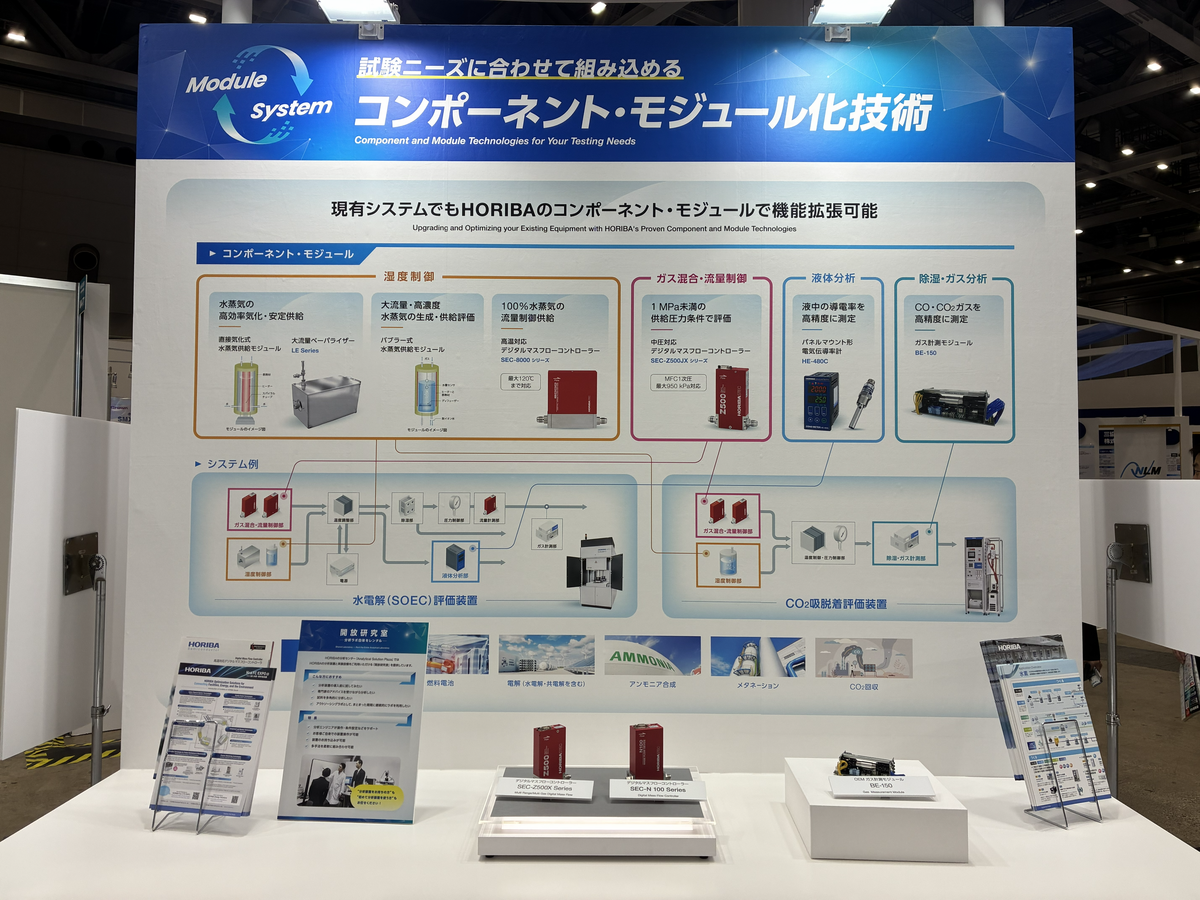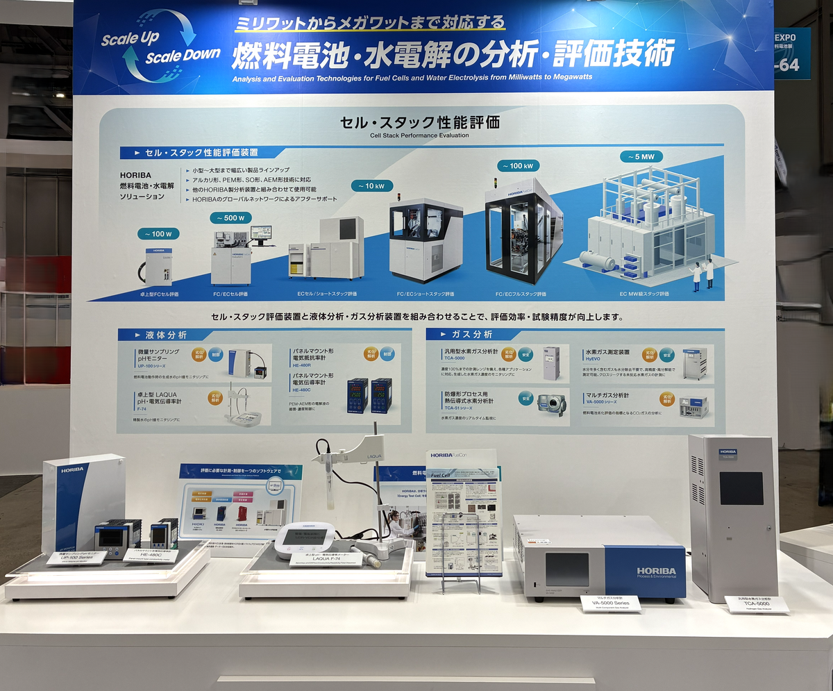 HORIBAは当エリアに長年にわたり出展しており、その定点観測から得られた展示会全体の傾向に対する気づきは、かつての「燃料電池自動車の早期実現」に向けた製品展示から、近年では水電解など水素を「つくる・ためる・はこぶ」ための技術展示へと重点が移りつつあることです。当社ブースでも水電解向けの 安定した水蒸気発生装置 に技術的な関心が寄せられ、お立ち寄りいただいたお客様と当社エンジニアがじっくりと議論する場面も見られました。 カーボンニュートラル社会の実現に向けた社会動向は紆余曲折もありますが、少しずつ、着実に前進しています。HORIBAはこれからも「はかる」の揺るぎないパートナーとして、お客様の様々な挑戦や課題解決に役立てる技術開発・ソリューション提案に全方位で取り組んでまいります。