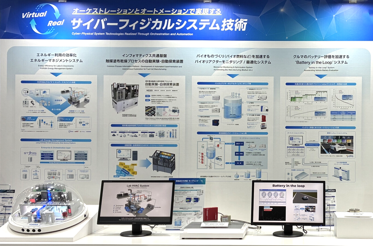 自動車・バッテリー試験設備や半導体クリーンルームなどの実証設備も備える HORIBAの新たな取り組みとして、独自のエネルギー需要予測に基づく省エネ技術や、開発環境を高度化するラボオーケストレーション技術を紹介・提案しました。