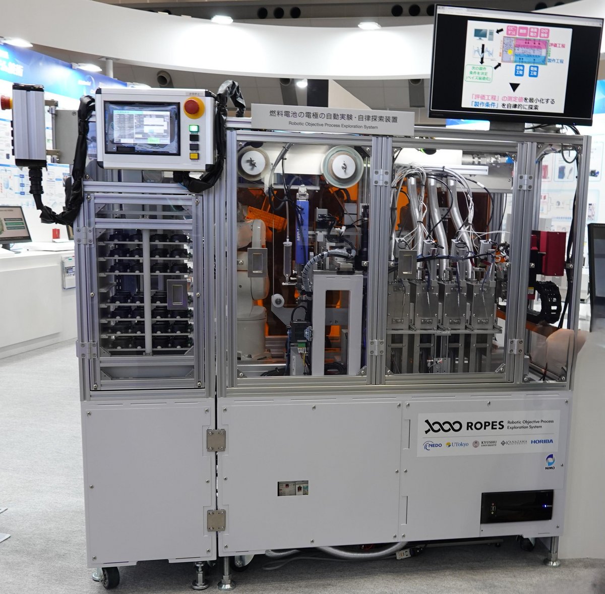 NEDOの委託事業「水素利用拡大に向けた共通基盤強化のための研究開発事業」の一環として、東京大学などと共同開発を進める、燃料電池の触媒層の製造プロセスを最適化する自動実験・自律探索システム(ROPES)の技術をご紹介しました。ロボットとAIを活用し、生産技術開発を大幅に効率化できる点が特長です。