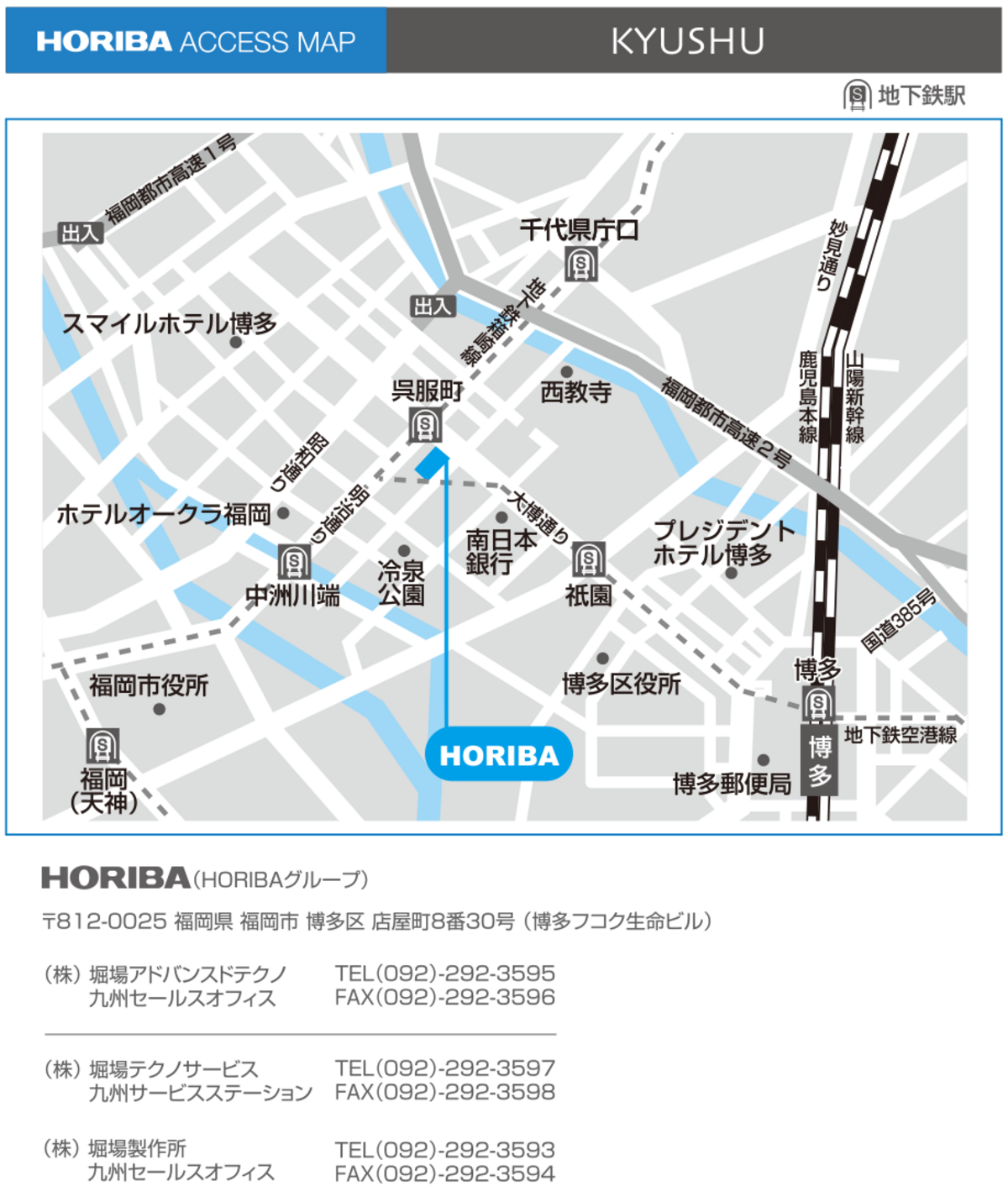 株式会社堀場アドバンスドテクノ 九州セールスオフィス 812-0025 福岡県福岡市 博多区店屋町8番30号(博多フコク生命ビル1F) 092 292 3595 092 292 3596