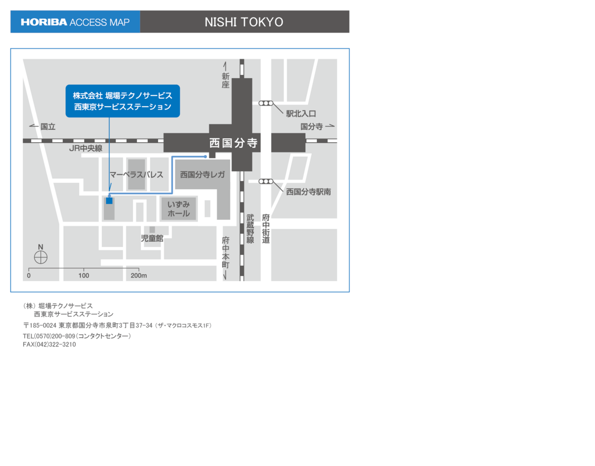 株式会社堀場テクノサービス 西東京サービスステーション 185-0024 東京都国分寺市泉町三丁目37番34号(ザ・マクロコスモス1F) 0570 200 809(コンタクトセンター) 050-3730-0694(サービスステーション共通FAX)ウェブサイト (ローカル言語で表示されることがあります)