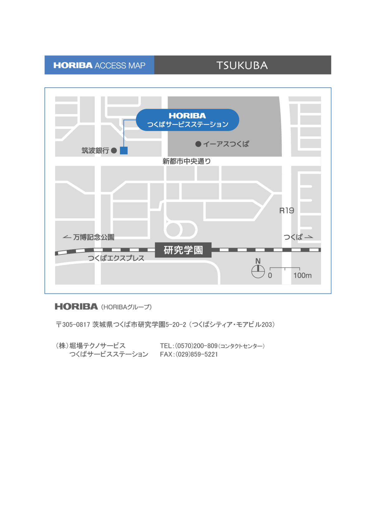 株式会社堀場テクノサービス つくばサービスステーション 305-0817 茨城県つくば市研究学園5-20-2 つくばシティア・モアビル203 0570 200 809(コンタクトセンター) 029 859 5221ウェブサイト