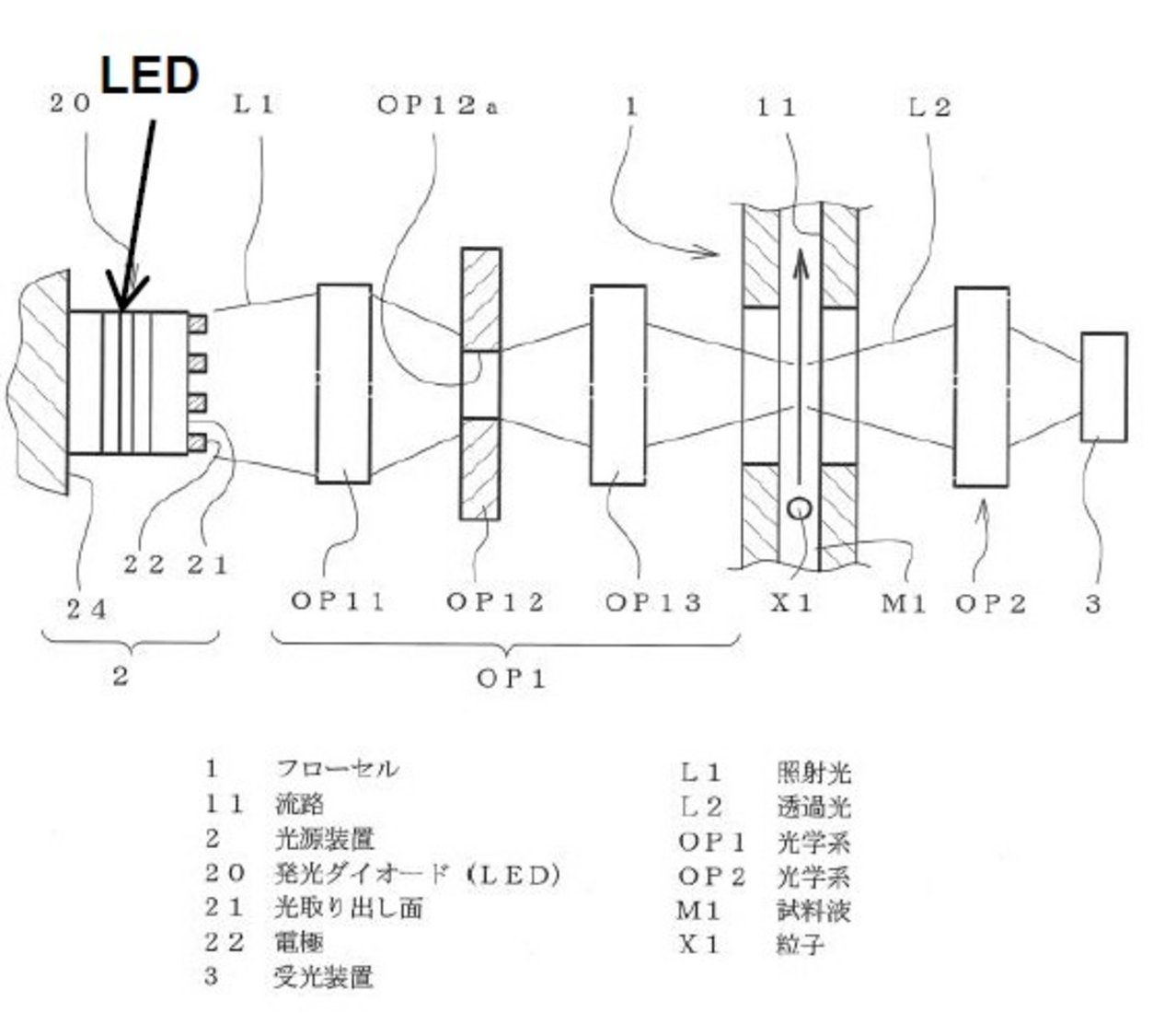 従来、血球計数装置では、光源にハロゲンランプを用いていました。しかし、ハロゲンランプは発熱量が大きく、光学系に影響を及ぼして測定性能を悪化させるほか、ハロゲンランプ自体が大きく、小型化に限界がありました。そこで、本発明では光源にLEDを採用し、熱影響の排除と小型化の実現をめざしました。