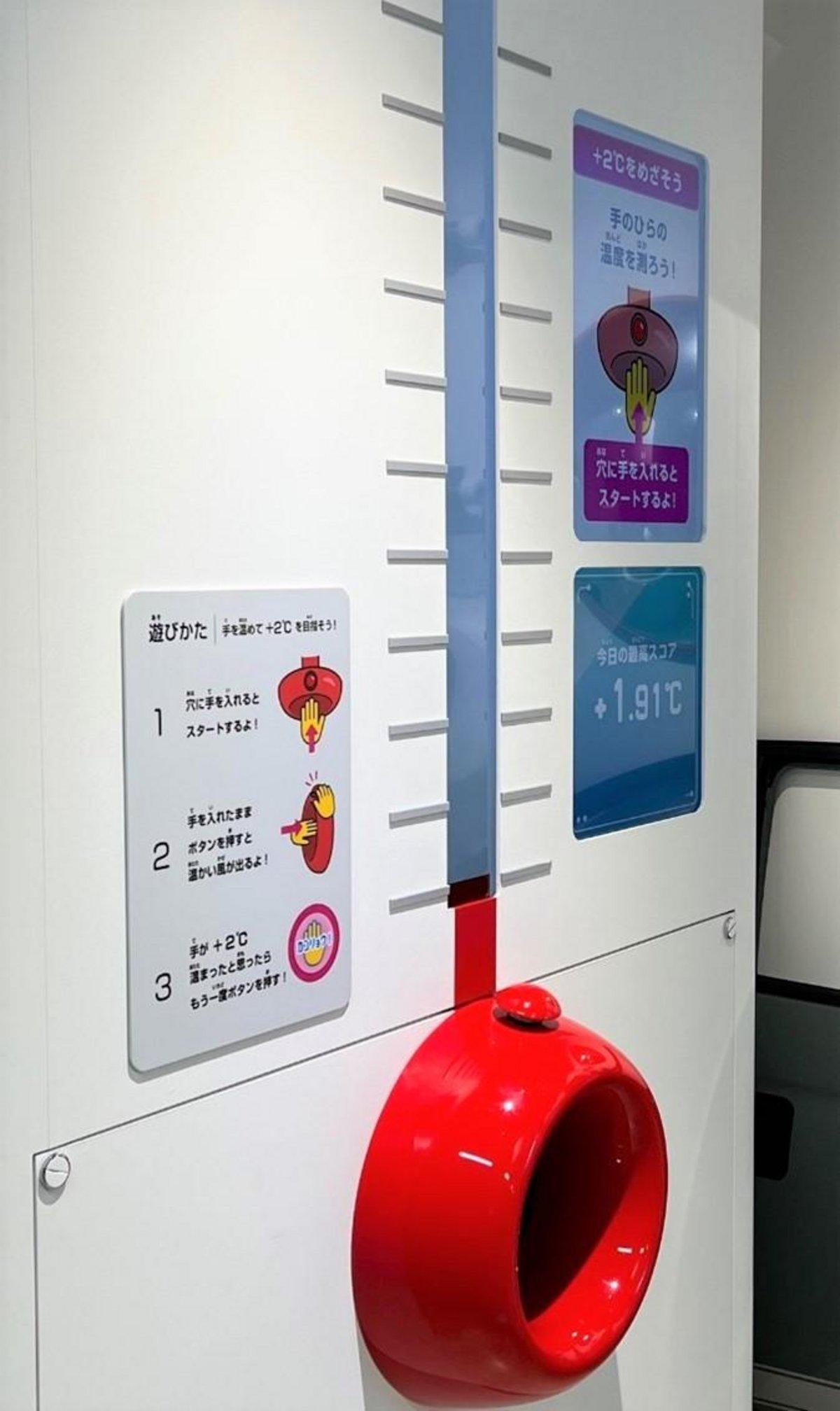このコーナーでは、自分の手の感覚と本当のの温度にどれくらいの差があるのかを、ゲームを通して楽しく体験できます。