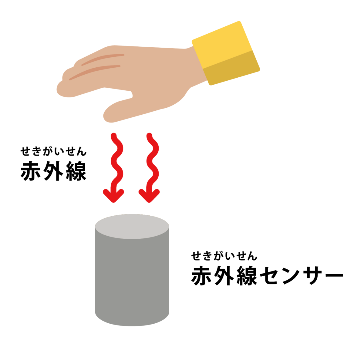 放射温度計は、あらゆるものからでている赤外線(せきがいせん)をキャッチすることで、温度をはかることができます。