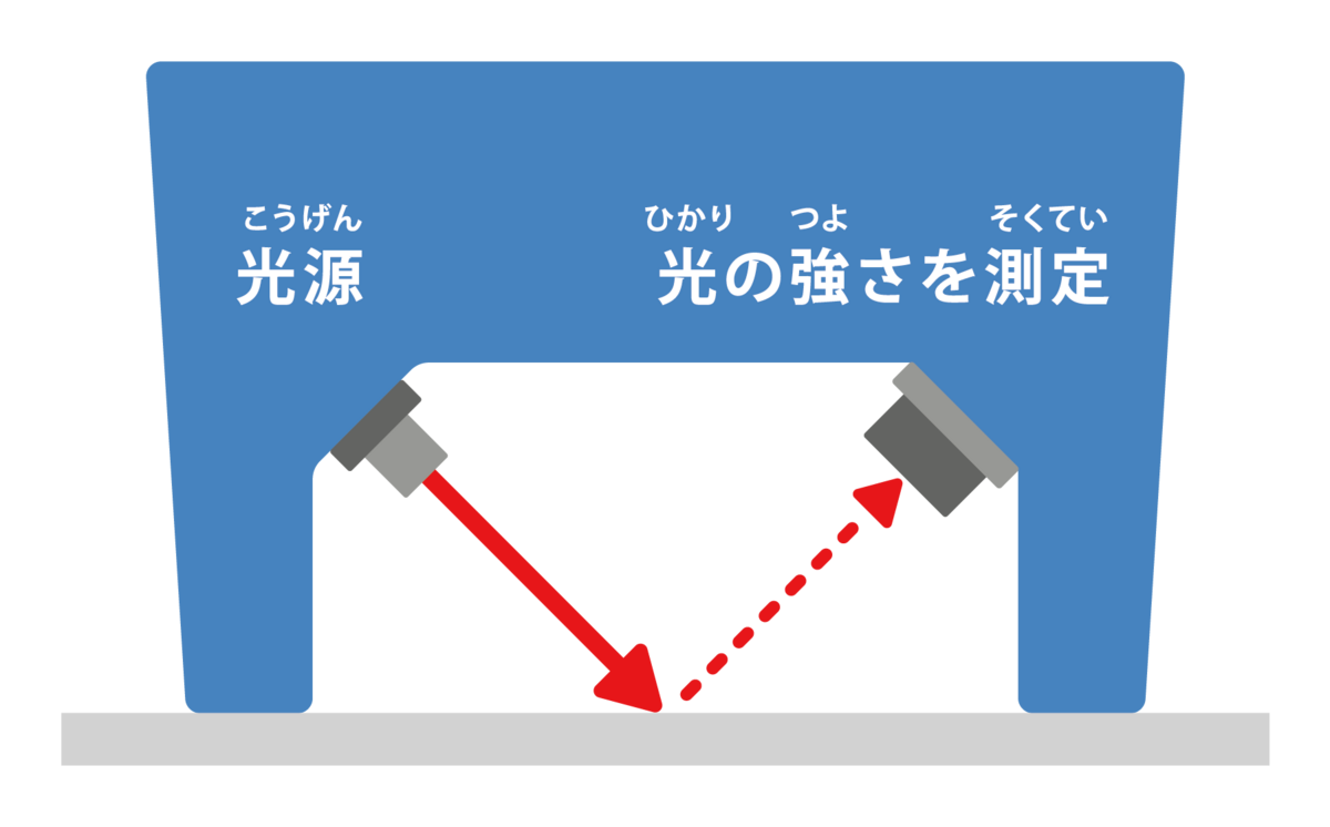 装置の底から出る光が、測定したいものの表面で反射(はんしゃ)され、