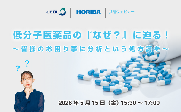 ~皆様のお困り事に分析という処方箋を~低分子医薬品は、今なお重要な医薬モダリティとして注目されています。本ウェビナーでは、原薬の結晶多形や非晶質化による物性変化の理解、粒子径や分散性の評価、さらには固体NMR・電子回折・質量分析を用いた化学構造解析など、最新の機器分析技術を駆使した実践的なアプローチ…