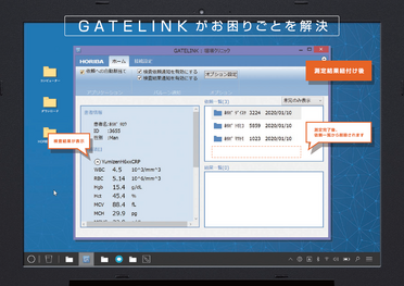 GATELINKは電子カルテ※と院内の臨床検査機器を接続できるソフトです。特に検査項目の多いCBC検査や生化学検査、尿検査等の装置を院内導入されようと考えている先生は、ぜひ一度ご検討ください。電子カルテへの手入力転記作業撲滅による業務効率UPや迅速な結果報告に伴う患者様の満足度向上に貢献できます。