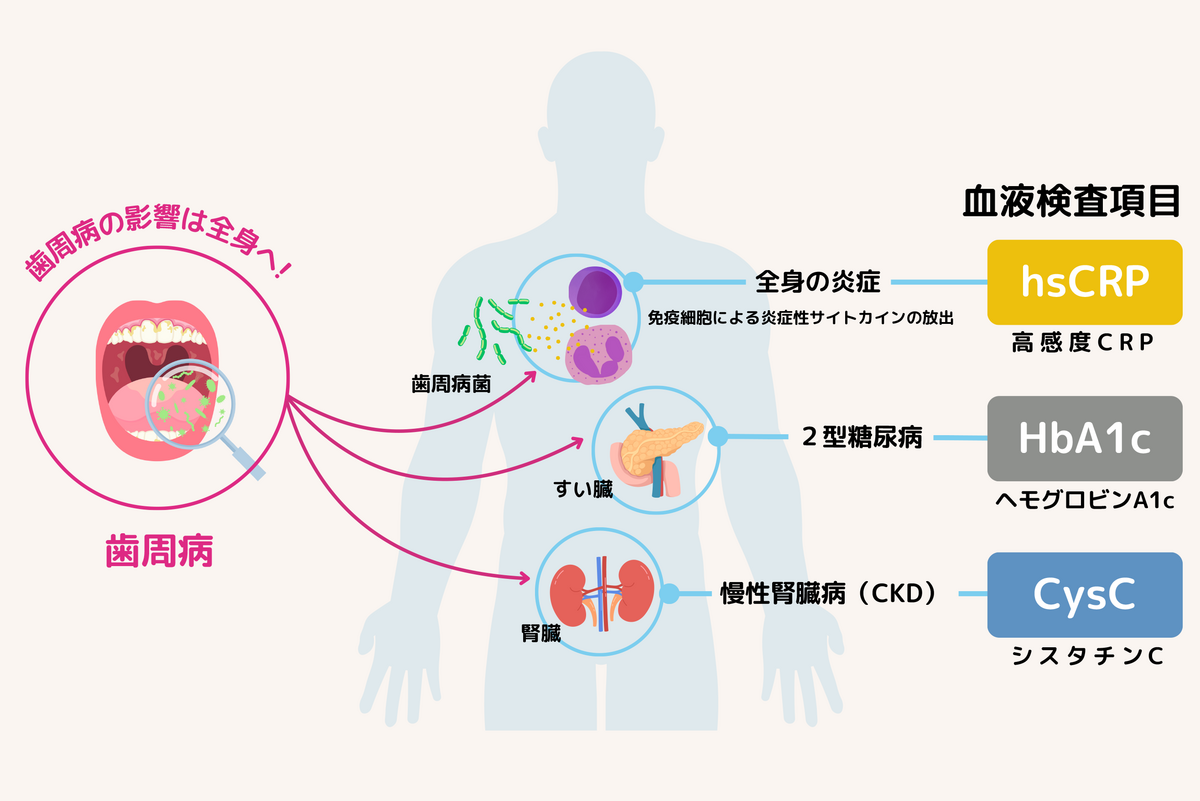 高感度CRP値を確認することで、全身の炎症状態を数値化して評価します。
