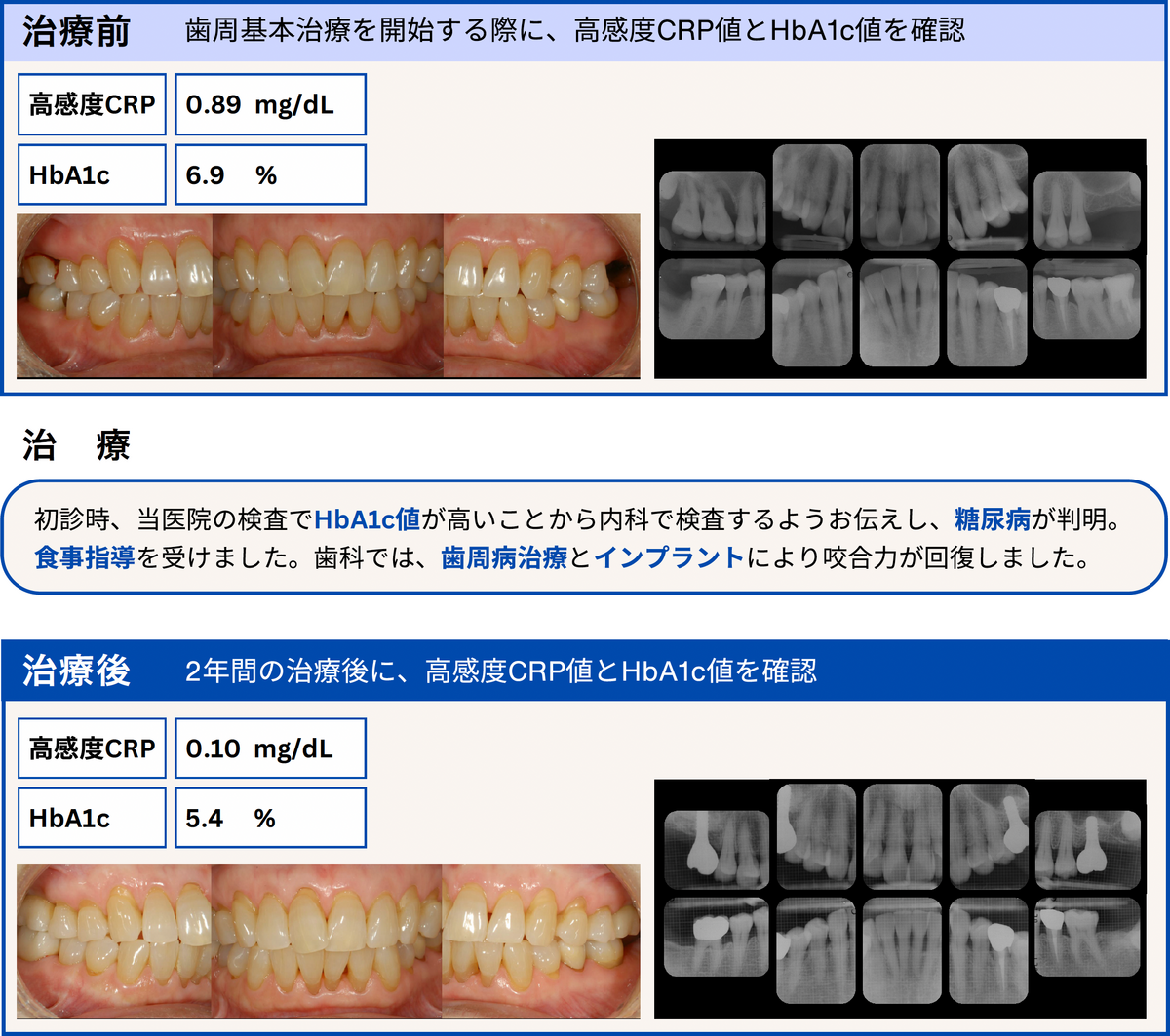 糖尿病患者の場合は、歯周治療によりHbA1c値が低下するケースが存在します。