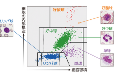 血球計数装置で使用している電気抵抗法、光学測定法の原理の解説をはじめ得られたデータの見方について紹介します。