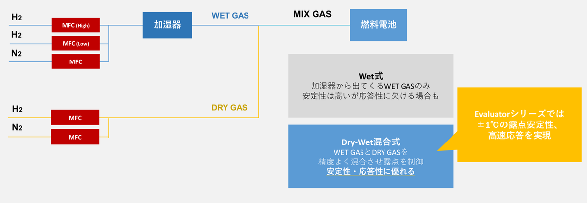 安定性と応答性を両立させるため、HORIBAではDry-Wet混合式という加湿方式を採用しています。