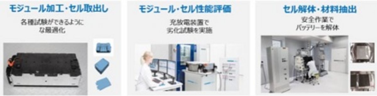 バッテリ劣化評価サービスでは、お客様からお預かりしたバッテリの劣化試験からグローブボックス内での解体、弊社の多種多様な分析機器を用いた劣化原因分析、分析結果の提出まで実施します。
