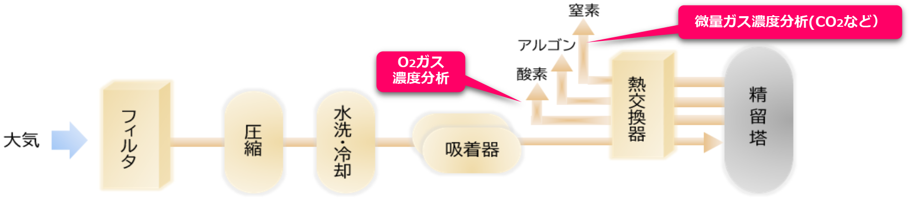 ガスを製造する空気分離プラントには、HORIBAのさまざまなガス分析計の採用実績があります。