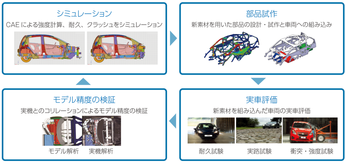軽量化新素材を用いた部品の設計・精度検証・車両の実車評価において、高いエンジニアリングスキルを提供します。