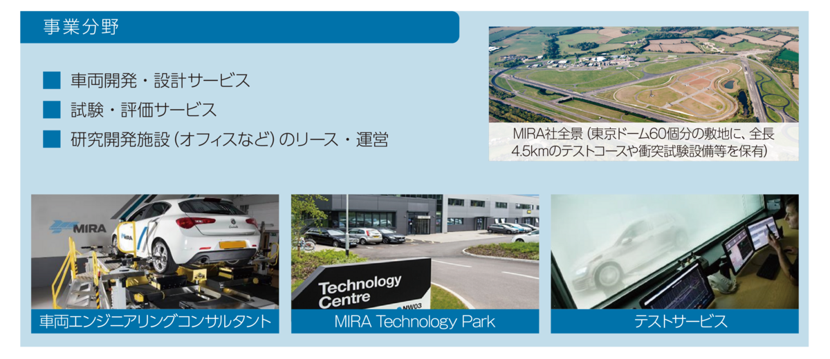 英国で70年以上の実績と経験を持つ、自動車のリサーチ・エンジニアリング・テスティングの先進的グローバルリーダーとして自動車会社、 部品サプライヤー等の自動車開発をサポート