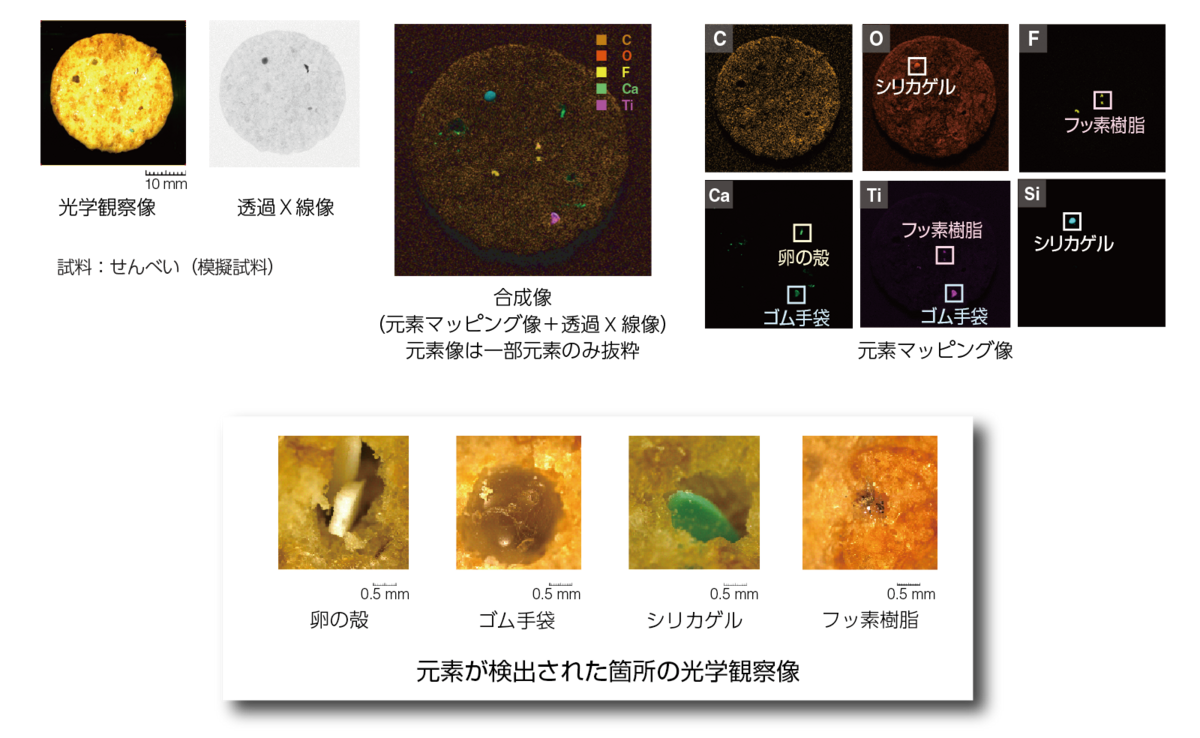 軽元素測定が可能なXGT-9000 Expertなら、これまで複数の装置を用いて分析する必要があった有機物や酸化物、窒化物などの分析をこの一台でできるため、食品に混入した金属以外の樹脂などの異物分析にも役立ちます。また、試料室は大気環境下での測定が可能なため、含水試料や含油試料の分析も可能です。