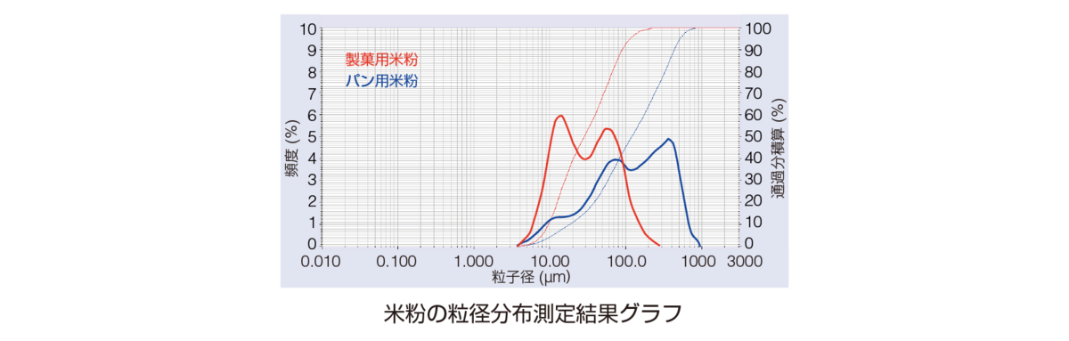製菓用米粉とパン用米粉の粒子径の違いを見分けることができました。