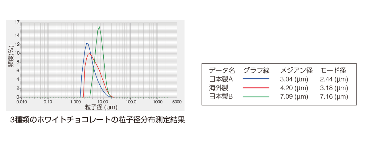 チョコレートの口当たりや食感は、含まれる微粒子の大きさによって異なります。