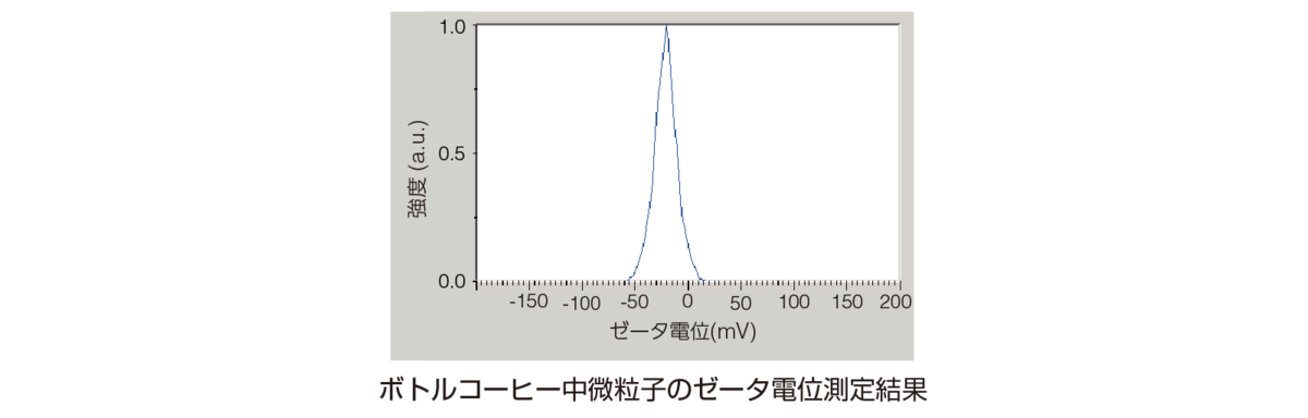 通常、コーヒーの微粒子同士は静電的に反発する状態に調整することで粒子が安定し、分散性が増した結果、凝集が防がれるため、コーヒー成分の沈降や相分離が起こりません。その指標となるゼータ電位を測定しました。