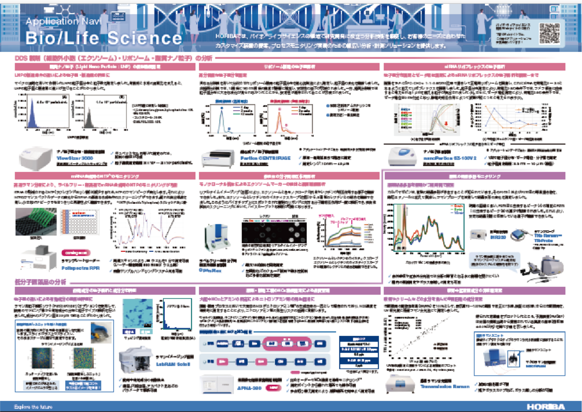 リポソームの粒子径測定本アプリケーションノートでは、ナノ粒子解析装置を用いたDDSで使用されるリポソームの粒子径分析事例を示します。DDS(DrugDelivery System)とは臓器、病原体、細胞に効果的に集中して薬を送るという技術です。そのためには、患部に届く途中で破壊、分解、吸収されるのを防ぐため薬を包み込むことと、幹部に到達できるサイズが必要になります。リポソームは包み込む膜として研究が繰り返されています。