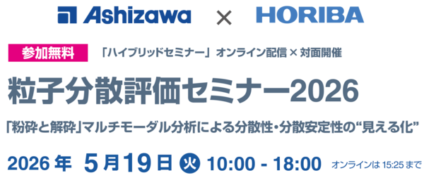 最先端材料を支える粉体技術において、分散体の設計とその数値化は、製品性能やプロセス安定性を左右する重要な要素です。第1回、第2回ともに早期満員となった本セミナー第3回では、これまで大きな反響をいただいた内容をさらに発展させ、講演企業5社が再び集結し、同一材料を用いた追加検証を実施しました。表面処理から分散操作、計測、評価、数値化に至る一連のプロセスを改めて横断的に検討し、その結果と知見を体系的にご紹介します。基礎理論の整理から実践的なノウハウまで、マルチモーダルな分析アプローチを通じて理解を深めていただける構成です。対面参加の方には、実際の測定・評価プロセスを間近でご覧いただき、体感いただけます。実際の現場における分散および評価の理解を一段引き上げる機会として、ぜひご活用ください。