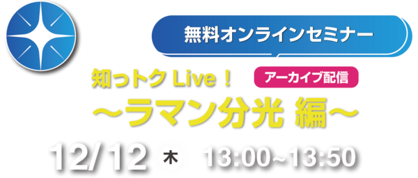 | 13:05~13:50 | 知っトクLive!~ラマン分光編~ | 株式会社堀場製作所 営業本部 NetworkSales東日本2チーム 小口 真弘 / 営業本部 マーケティングイノベーション室 谷 洋平 |