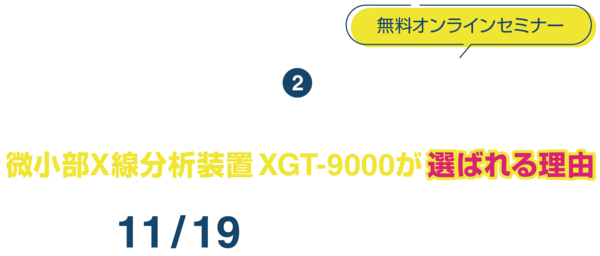 | 13:05~14:00 | 知っトクLive!シーズン2 ~ 誰にも聞けない蛍光X線装置(XRF)の基礎知識 & 微小部X線分析装置 XGT-9000が選ばれる理由~ | 株式会社堀場製作所 営業本部 X線装置リーダー 三添 英朗 営業本部 マーケティングイノベーション室 谷 洋平 |