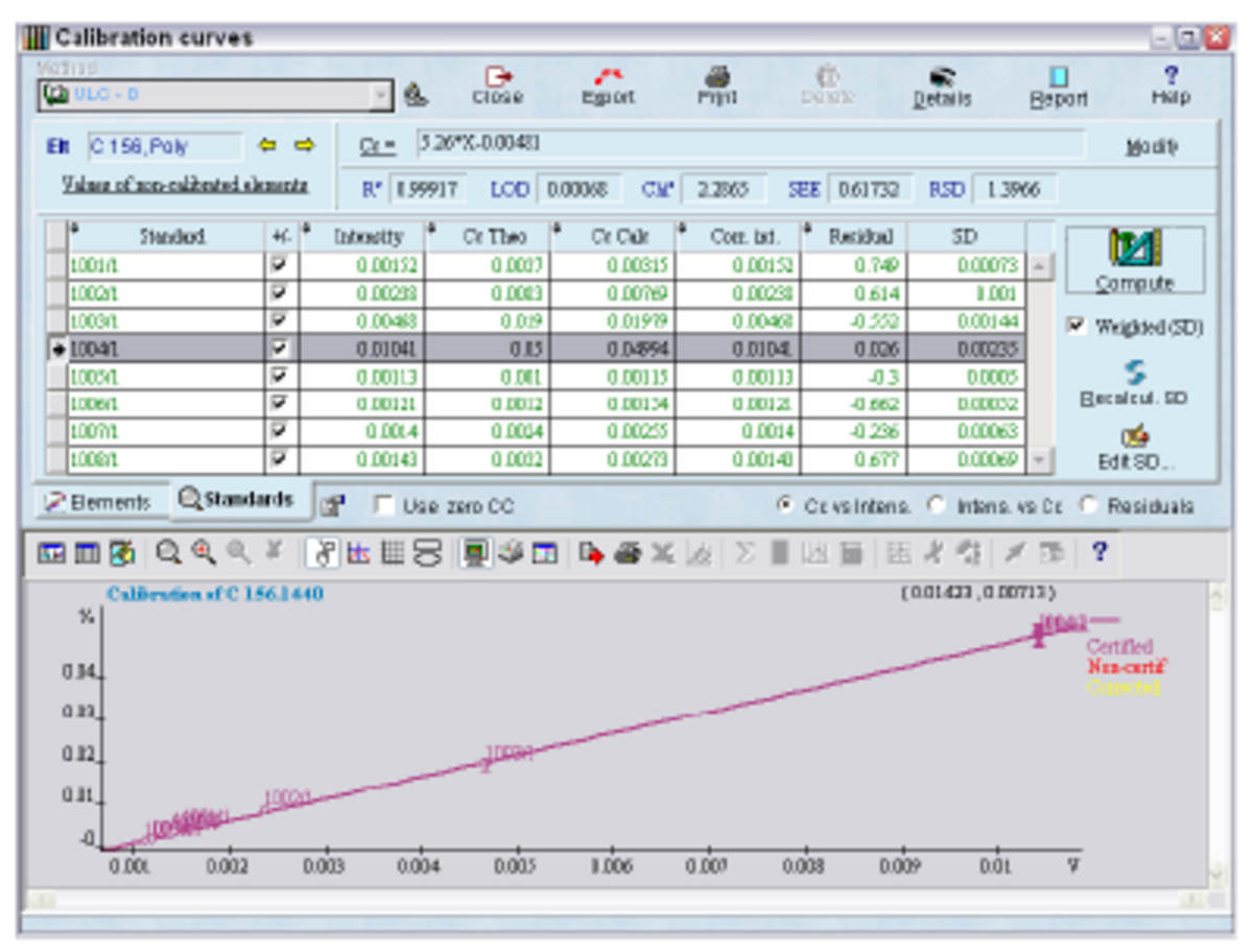 rf-GD-OESは、マトリクス影響が少ない光源であるため、ダイナミックレンジが広く、検量線も幅広い成分・組成に対応することができます。
