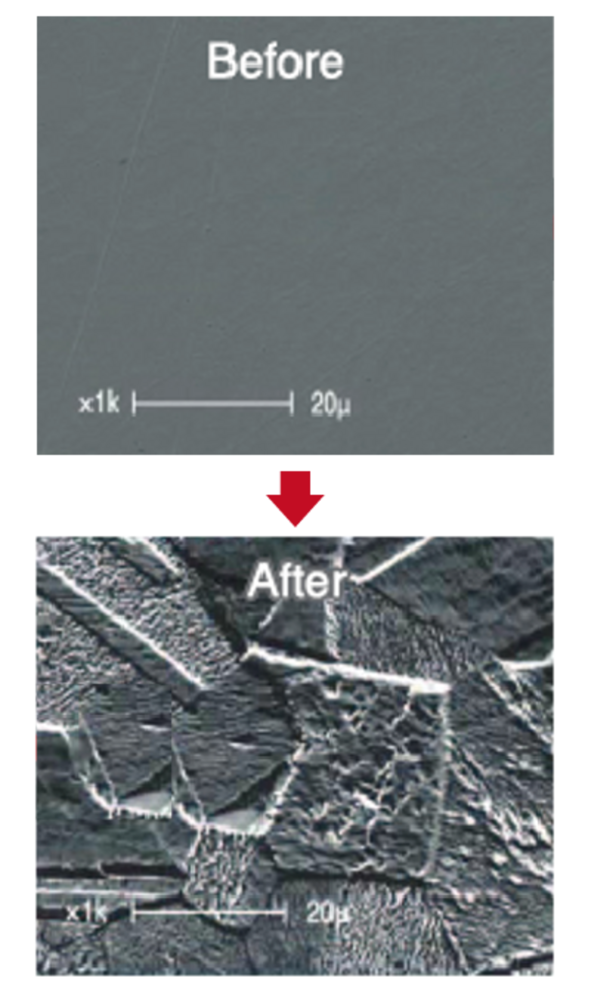 鏡面研磨やFIB・CP処理によりできた凹凸のない試料表面に若干の凹凸を付け、観察しやすくするための前処理に適しています。