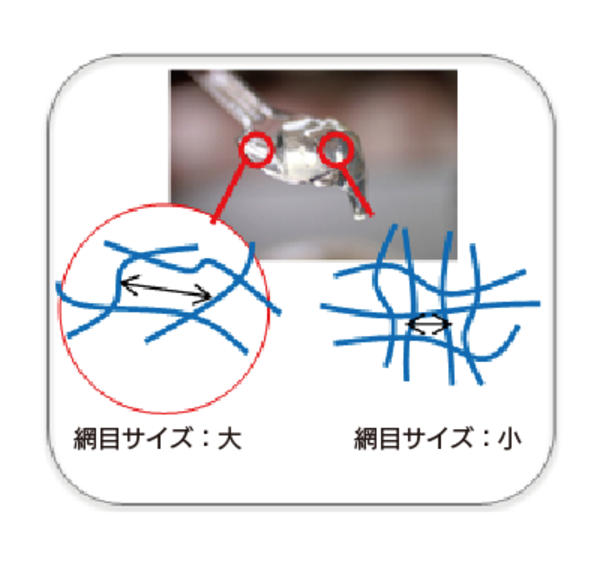 ナノ粒子解析装置 nanoPartica SZ-100V2は、動的光散乱法を用いて、ゲルが持つネットワーク構造の網目サイズの分布を簡便に測定することができます。