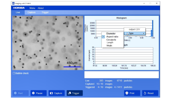 レーザ回折/散乱式の粒子径分布測定装置 Partica LA-960V2 画像解析ユニットは、画像による粒子観察が粒子径分布測定と同時に可能です。