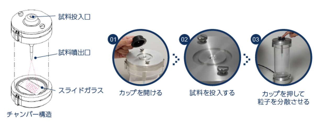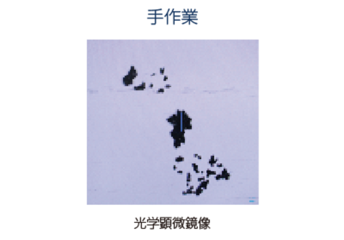 試料を均一に分散させ、粒子解析ソフトで各粒子を自動分析することで、混合物の統計解析が可能です。