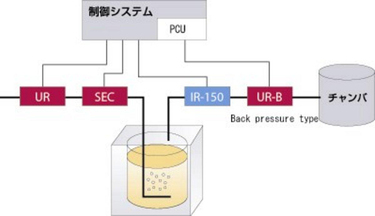 化合物半導体プロセスで用いられる液体材料:TMAI、TMIn、TMGa、DEZnなどの安定した気化システムに必要なコンポーネンツをご提案しています。液体材料の気化発生には、バブリングガス流量の制御の他、液体材料シンリンダー内部圧力、発生温度の精密な制御が必要です。弊社ではマスフローコントローラ(SECシリーズ)、オートプレッシャーレギュレータ(URシリーズ)、フィードバックコントローラ(PCU)等をご提供しています。更に発生ガス濃度を非分散型赤外吸収法(NDIR法)により直接計測し濃度管理が行える小型モニタ:IR-150シリーズもラインアップしています。各々のデバイスを統括的に制御する専用ソフトも準備し、お客さまのシステムに応じた液体材料気化システムをご提案しています。
