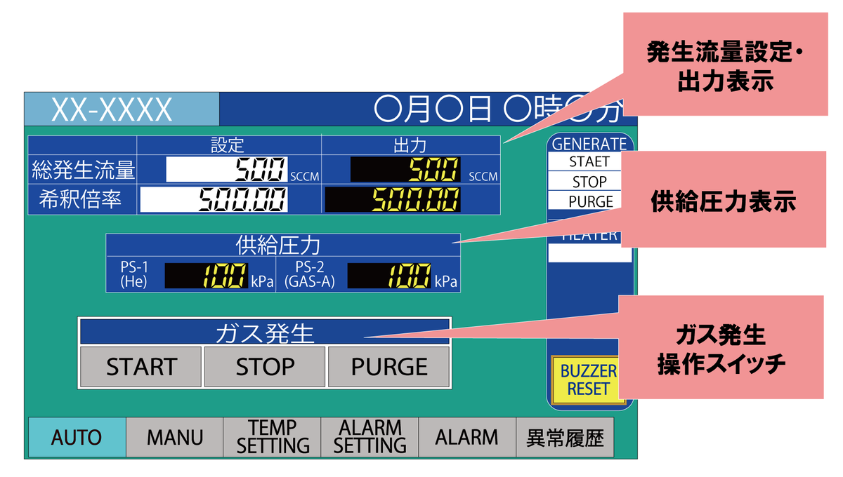 スタンダードガスジェネレータ操作パネル例