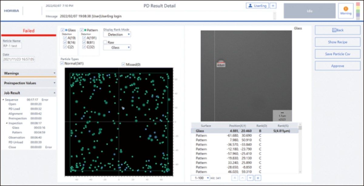 簡単な操作と0.5μm感度で高スループット測定を実現。複数倍率の顕微鏡を内蔵しているため測定後に異物の観察と画像データの保存も可能です。