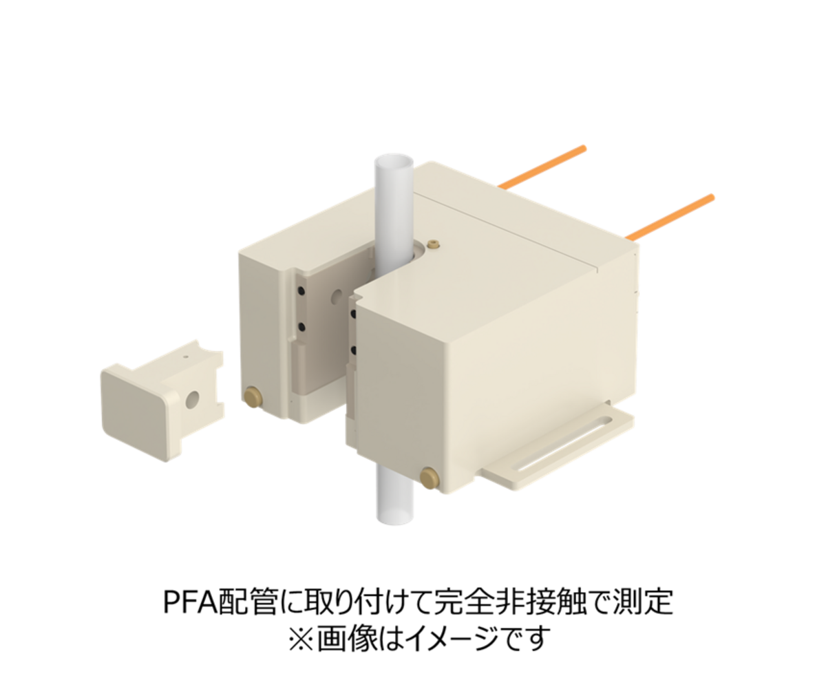 非接触測定で安全性とプロセス最適化に寄与配管に取り付けるだけで薬液を非接触測定できる方式を採用し、薬液漏れやコンタミネーションリスクを低減。安全な作業性や薬液使用量の削減に貢献します。