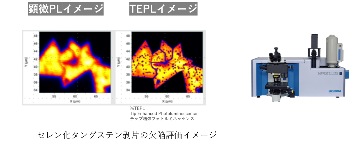 薄膜状態で発光ダイオードとなる、光起電材料のセレン化タングステン剥片のフォトルミネッセンス(PL)測定とより詳細情報が得られるチップ増強フォトルミネッセンス(TEPL)のイメージング測定を実施しました。