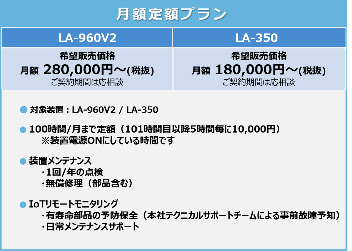 装置レンタルに加え消耗品、保守、状態監視を一つのパッケージにしたサービス商品です。