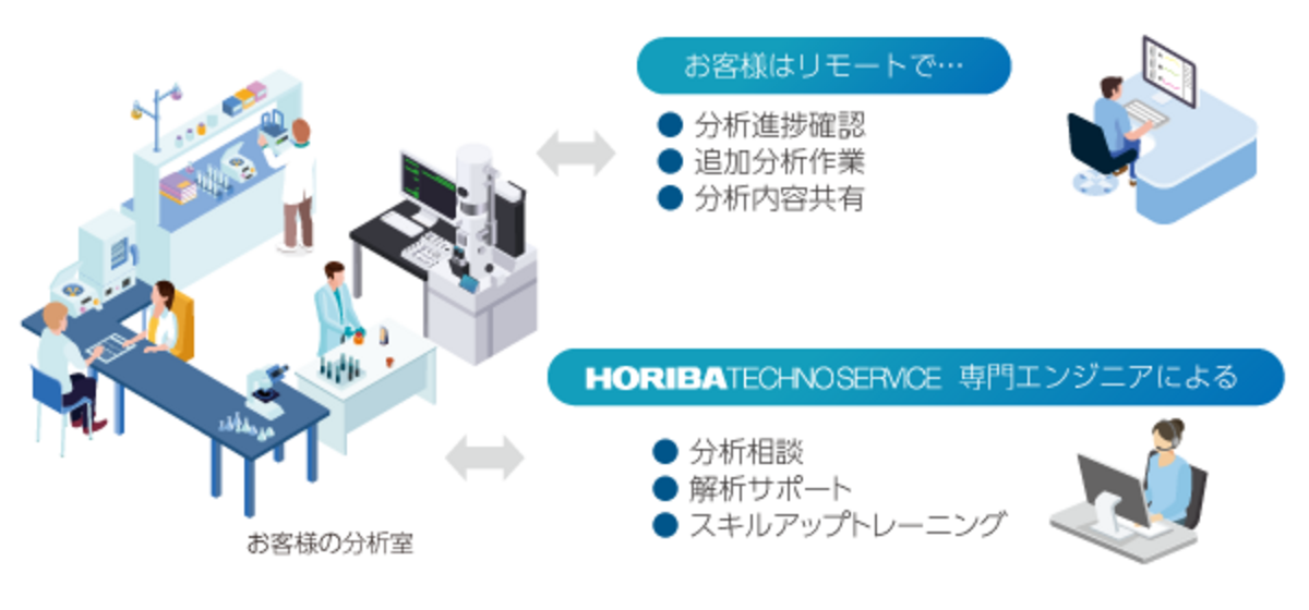 - 分析で不明な点があるときに、リモートで実際の分析画面をシェアしながら、HORIBA のエンジニアに相談できます。