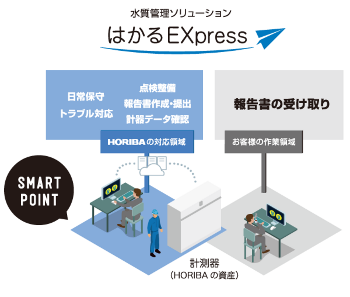 これまで、計測器の購入後は維持管理から報告書の作成などすべてお客様側で対応いただく必要がありました。「はかるEXpress」は、月々の定額料金のみで、さまざまな作業をHORIBA にお任せいただけるサービスです。