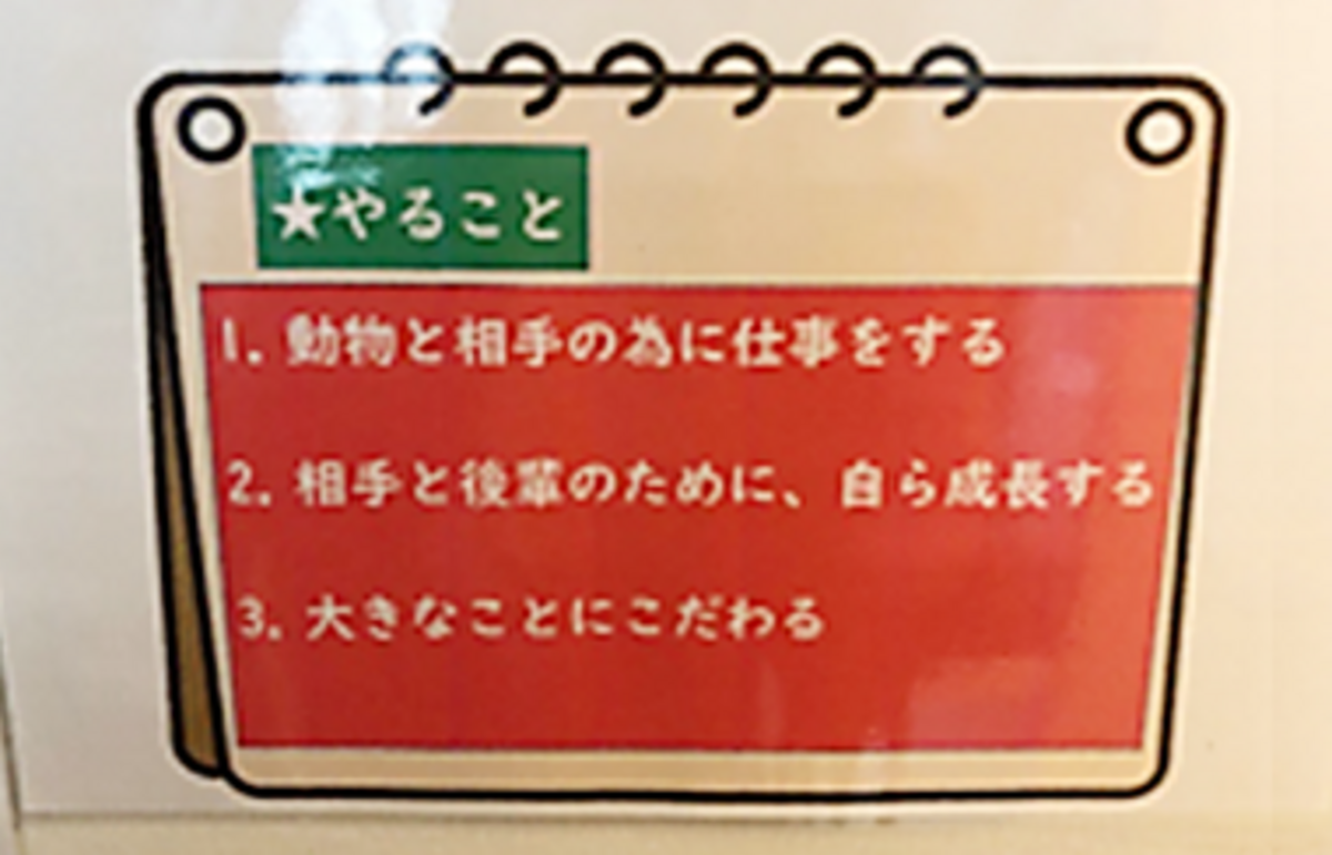 (誠実な医療がしたい。思いやりをもって働きたい。顧客(=動物)目線で働こう。)