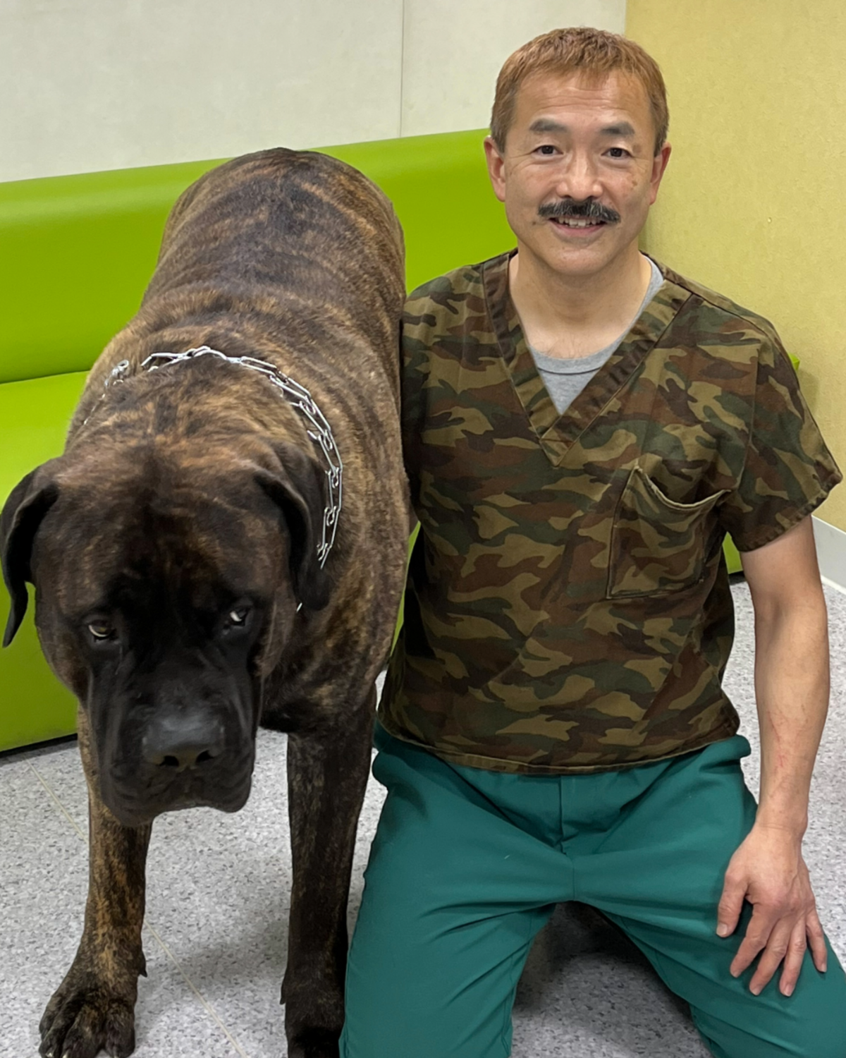 病院の2階にある待合室で、インタビューをさせていただきました。同じフロアでは、上條院長の愛犬2匹が元気よく出迎えてくれました。写真撮影の際、筋肉質な腕で愛犬をしっかり抱きかかえるお姿とは裏腹に、「若い獣医師のために、働きやすい環境を作ることが私の役目です」と柔らかな口調で語られたことが、とても印象に残っています。今後さらにスタッフが増え、さまざまな診療科が充実していく病院の姿が目に浮かびました。