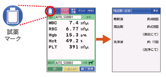 | 試薬 | 希釈液 溶血剤 洗浄液 即効洗浄液 キャリブレータ コントロール血液 |