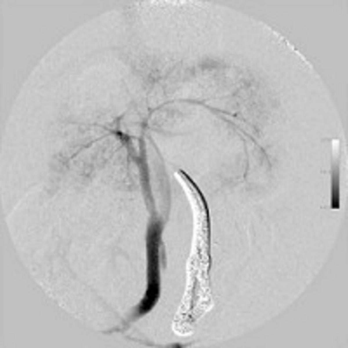 図5 仮結紮後の門脈造影像(DSA)肝内門脈枝の発達が悪い