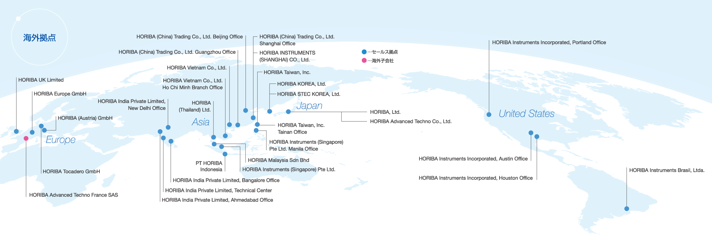 2023年4月に水質計測ビジネスの新拠点として、堀場アドバンスドテクノ・フランス社がHORIBAグループに加わりました。これにより京都本社を中心に、アジア・米州・欧州のネットワークの結びつきを強め、世界各地域で必要とされる水質計測ニーズを正確に把握し、グローバル市場における水の安心・安全と環境保全に貢献します。