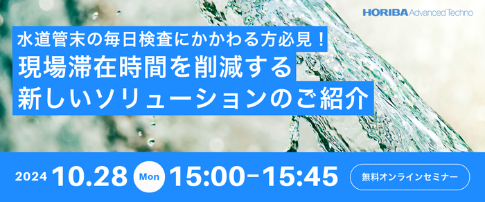 給水管末箇所などの水質を毎日検査しているお客様、現場滞在時間を削減しませんか?本セミナーでは、工具不要で簡単に取り外しが可能なモジュール式センサを採用した新たな水質計をご紹介します。現場ではセンサを交換するだけ!?モジュール式センサだからできる現場滞在時間を削減する運用方法をご説明します。ぜひこの機会にご聴講ください!